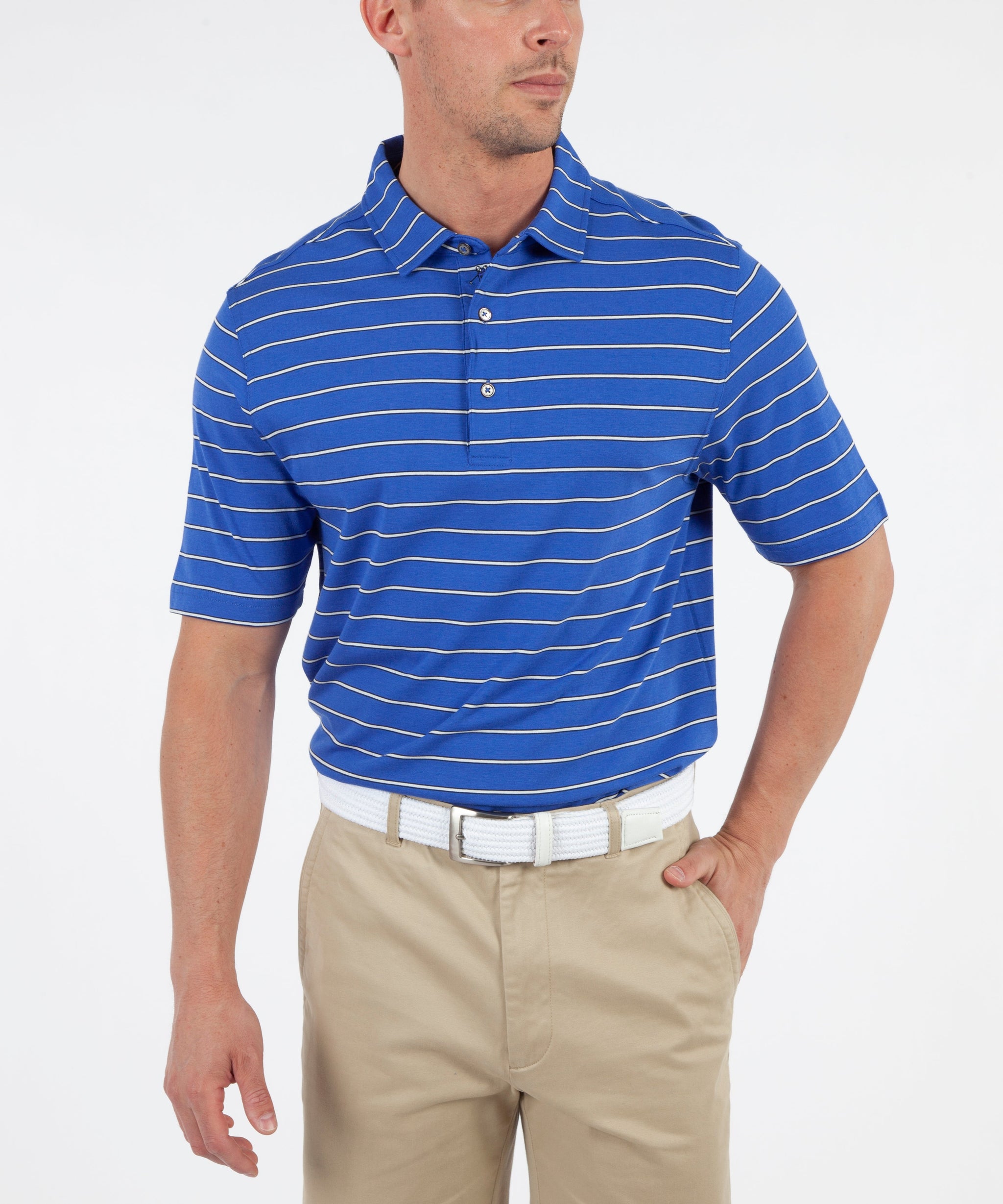 Move into warmer days at your own pace. Comfortably taking you from the course to dinner, this timeless stripe polo delivers cotton softness and breathability with a technical edge. 55% cotton, 45% Modal® rayon, 5% spandex. Machine wash. Imported.