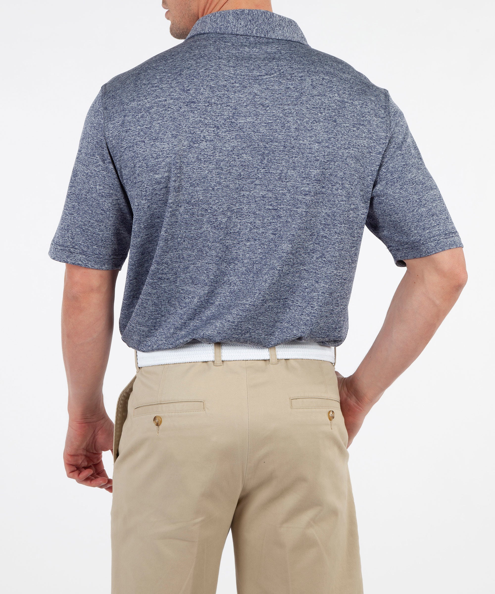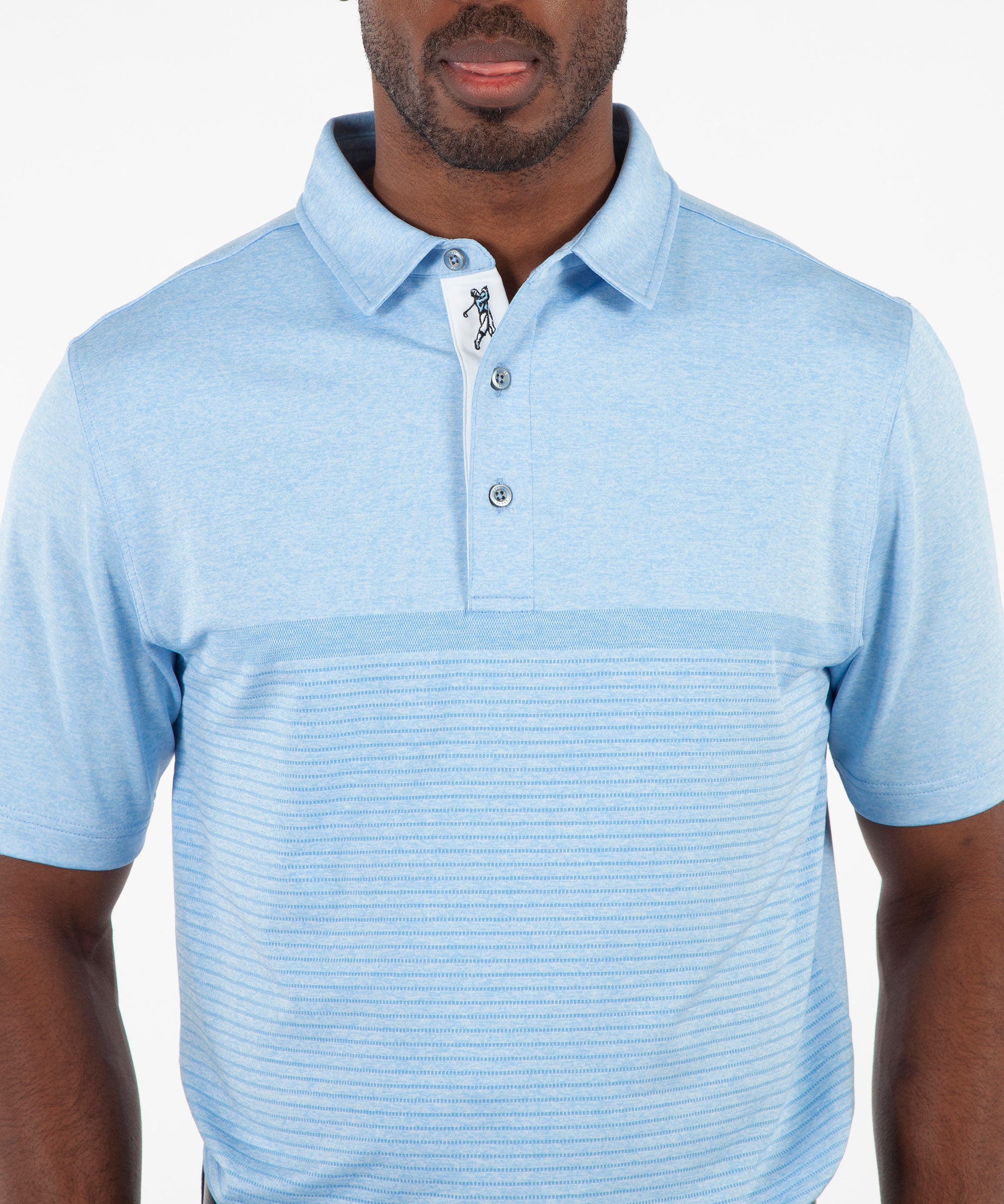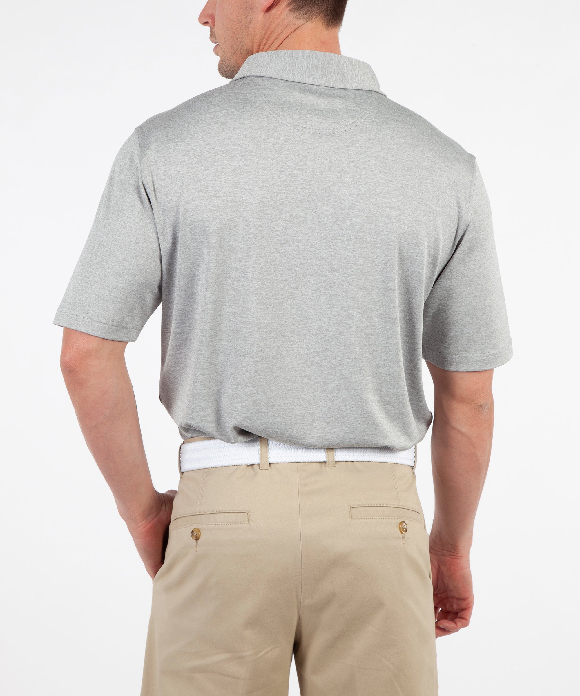 As refreshing as an ocean breeze, this jacquard stripe-front polo is the perfect blend of modern and classic. Advanced tech fibers offer optimal stretch comfort. 92% poly, 8% spandex. Machine wash. Imported.