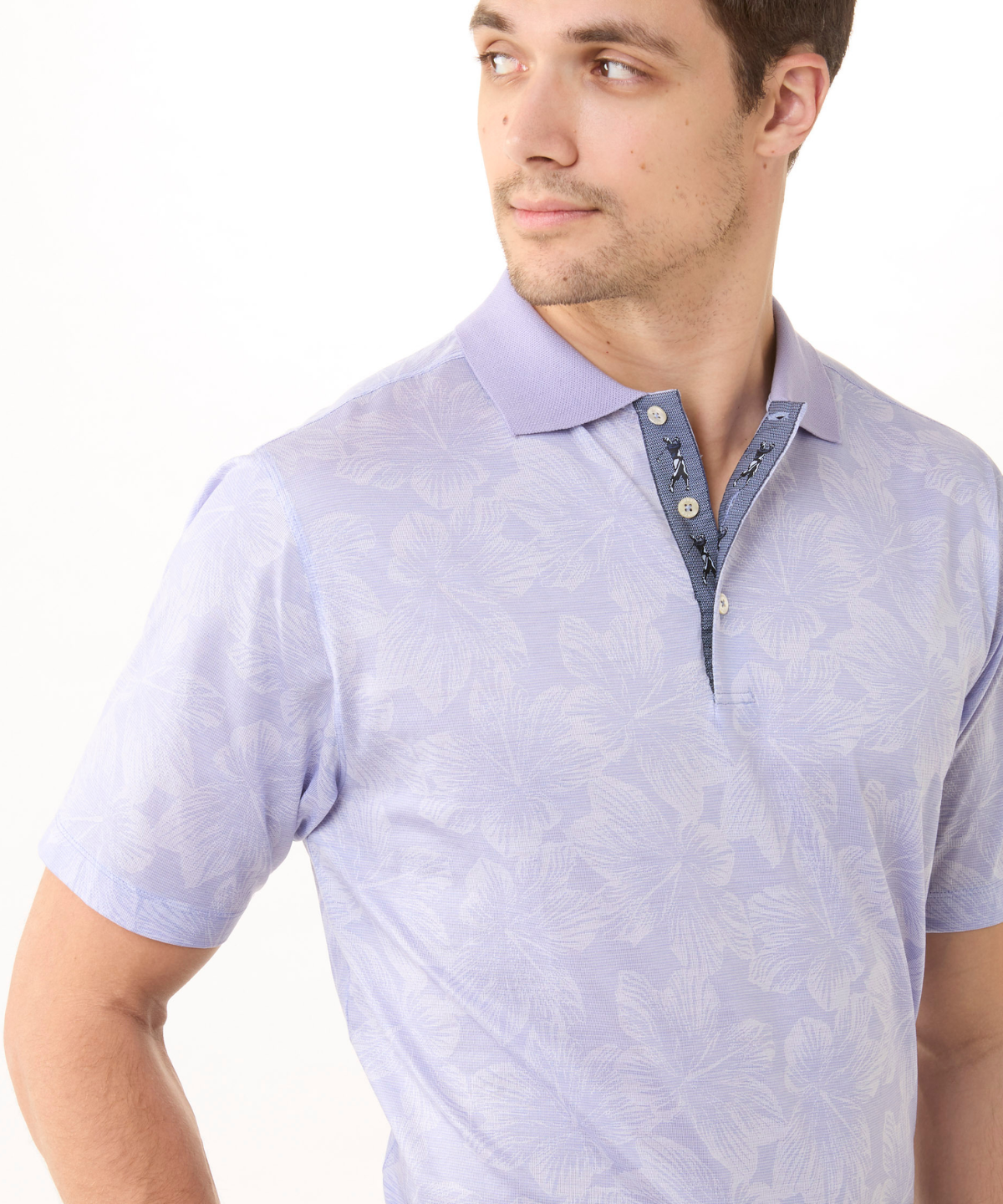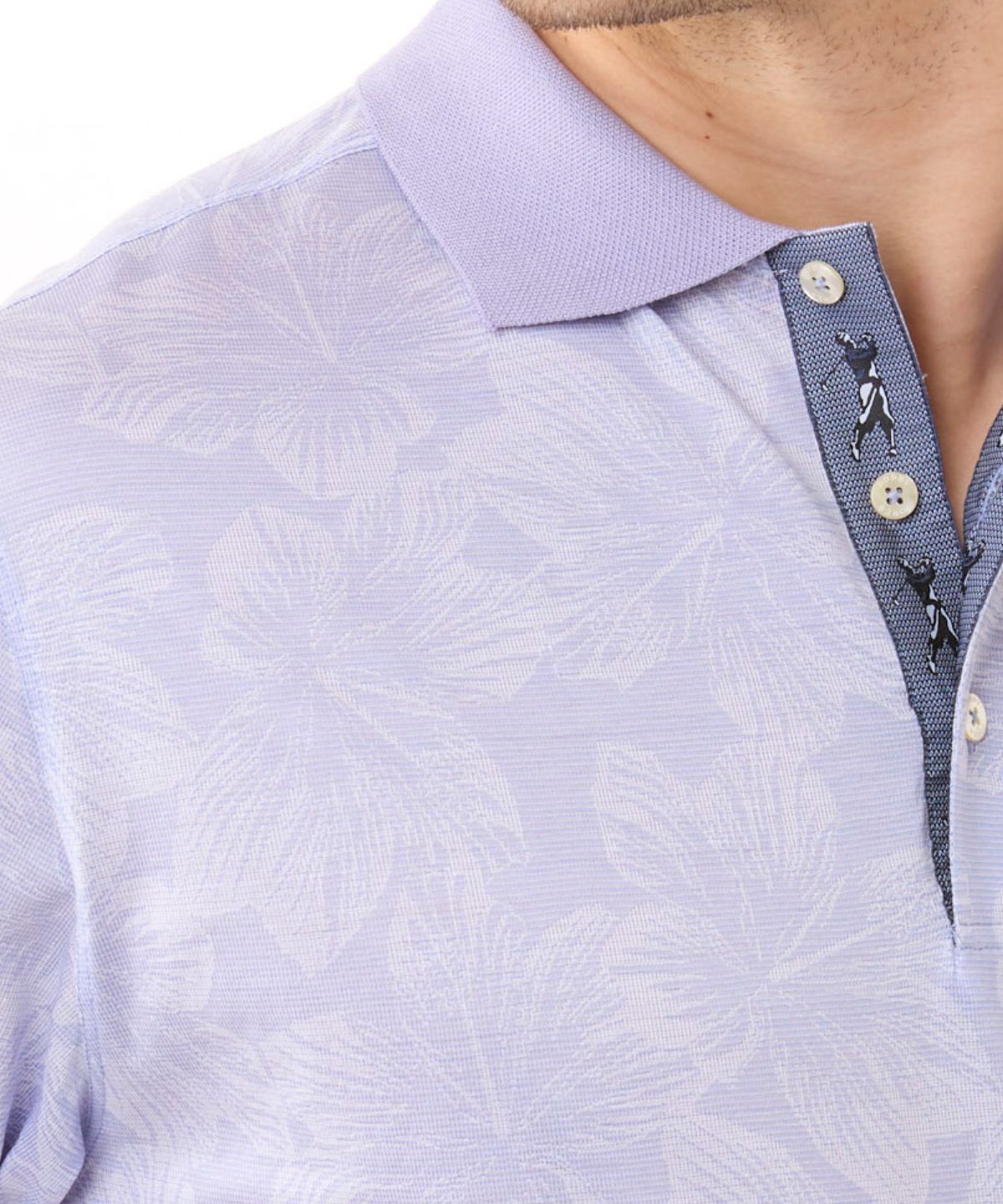 Take a more refined approach to tropical style with this Italian cotton polo shirt from our Heritage Collection. Tonal flowers capture the essence of the season while being perfectly at home on the course or off. Pure cotton construction with a ribbed knit collar in a contrasting color, and bottom side vents for extra comfort. 100% cotton. Machine wash or dry clean. Made in Italy.