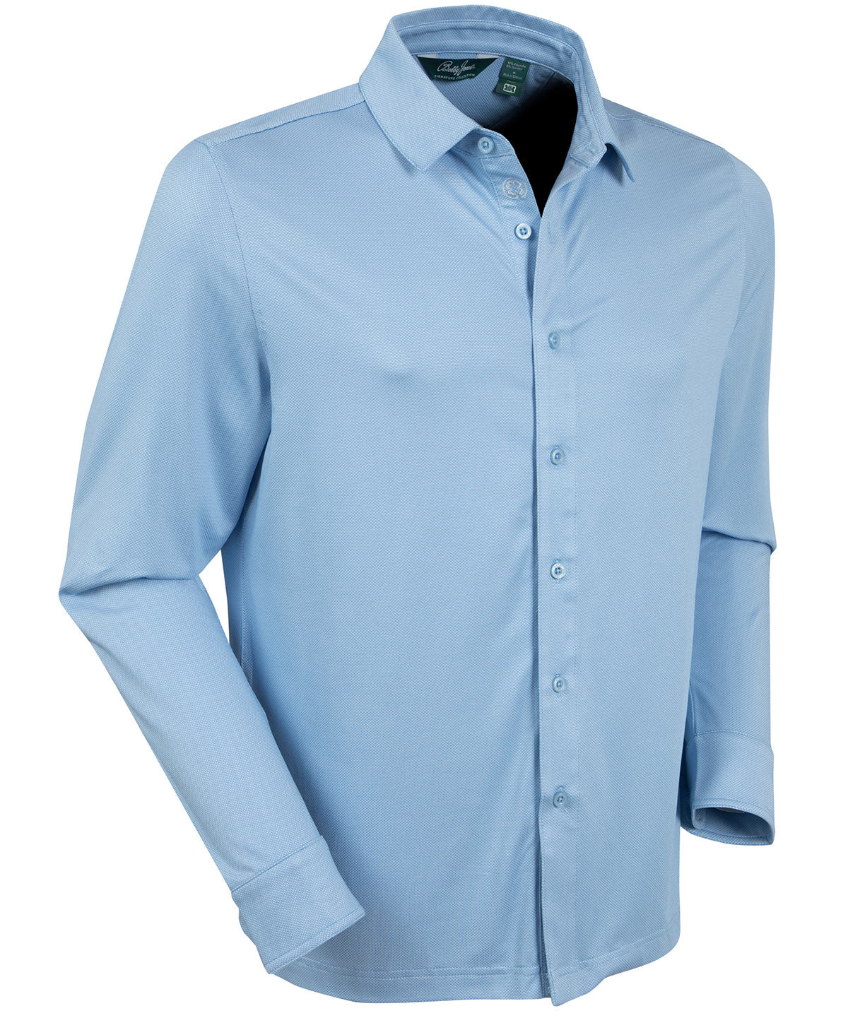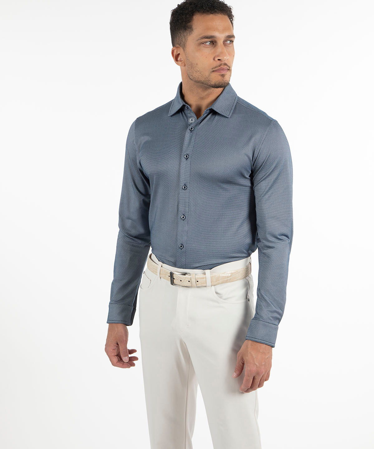Combining classic tailoring with advanced performance features, the Performance Jacquard Dash Long-Sleeve Button-Down Sport Shirt is an elevated essential for any wardrobe. Crafted with a subtle jacquard dash pattern, this shirt delivers a refined texture that enhances its sophisticated aesthetic. Made from a lightweight blend of 96% polyester and 4% spandex, it provides moisture-wicking, quick-dry performance, and four-way stretch for ultimate comfort and mobility.