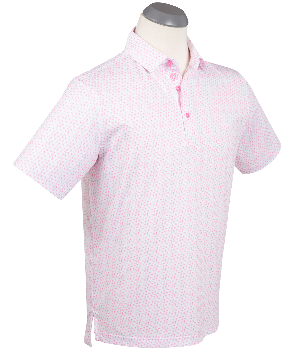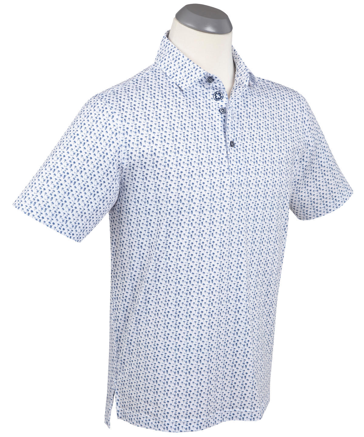 Easygoing palm tree styling brings a warm-weather feel to this performance golf polo. Smooth stretch jersey fabric stays breathable and moisture-wicking, while UPF sun protection keeps you comfortable from sunny rounds to relaxed off-course wear.